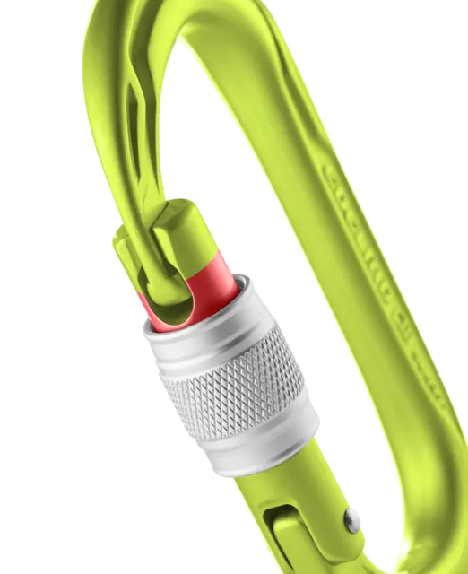 Oval carabiner with a very slim locking sleeve. Ideal for clipping rigging plates, pulleys, and rope clamps, as well as for positioning anchor points.