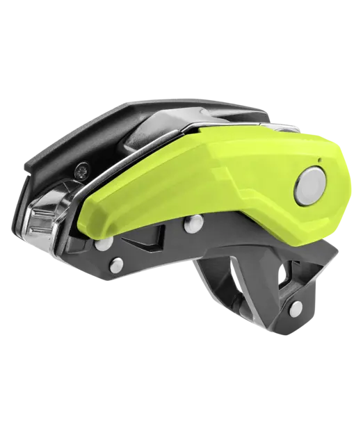 Pinch - a new belaying experience with the PINCH, a new, versatile assisted braking belay device for use in sport climbing, multi-pitch climbing and rope access techniques. The PINCH is the first device on the market that can be attached directly to the central ring of the climbing harness. Thanks to its low, close-to-the-body position, the PINCH does not need to be fixed in place when releasing the rope and the brake rope can always be gripped with all fingers. In addition, the compact belay system provides an increased span, which allows the belayer to pay out 20 - 30 cm more rope at once. The linear rope run through the frontal steel braking grooves reduces rope tangles when lowering and abseiling. In addition to the lowering lever, the speed can be controlled by the pressure of the braking hand, which contributes to increased braking rope control, especially when using thin, soft ropes. The anti-panic function provides added safety not only for beginners. A special feature is the integrated second braking tier, which enables controlled lowering by pulling the lowering lever further when securing particularly light persons or in systems with high rope friction. Users and experienced rope access technicians can permanently deactivate the anti-panic function using a screw supplied. Another plus: When used on multi-pitch lengths, the PINCH is the only device on the market that can be attached to the belay station in four different directions in 90° increments. This means that the lowering lever can always be brought into a position in which it can be operated freely.