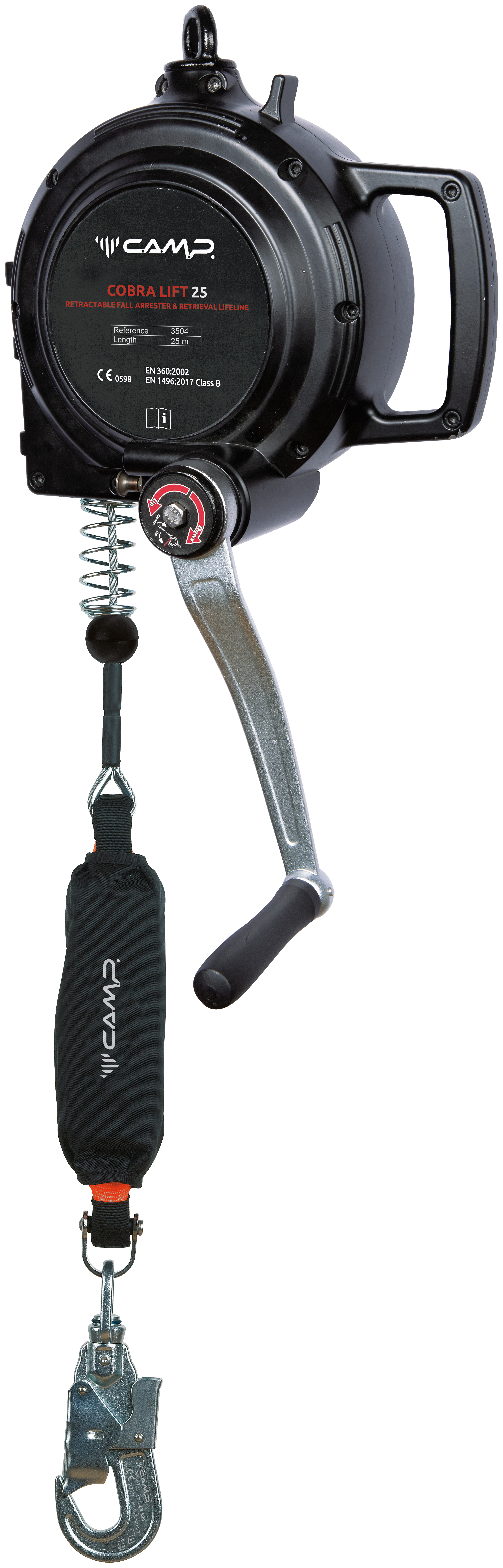 Can be used as a normal self-retracting fall arrester, the retrieval winch can be easily activated to safely rescue the worker in the event of an accident.