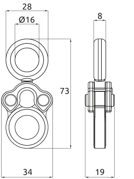 The ball connection allows for both rotation and tilting between the two rings in all directions. The size and shape are more compact than other swiveling products on the market. The innovative design also prevents the accumulation of dirt and makes inspection easy. Main structure is carbon steel with a double corrosion preventive coating. Two attachment points, one in aluminum alloy and the other in stainless steel. Includes two removeable silicon anti-rotation inserts. Working load limit: 3 kN. Minimum breaking strength: 25 kN.