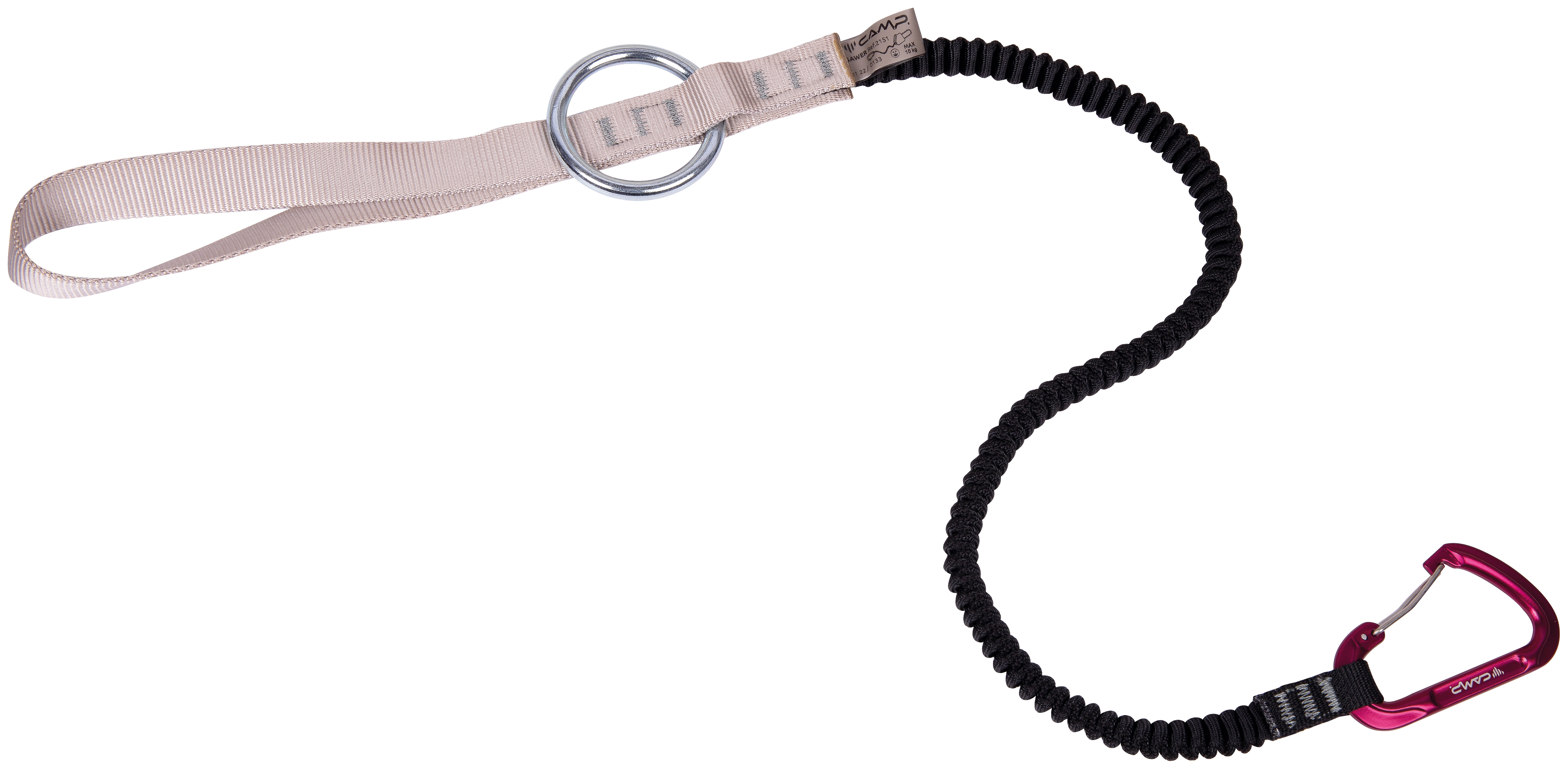 A bungee rewind lanyard designed to attach chainsaws and other tools to a harness.