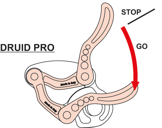A lightweight, compact auto-braking descender for rope access and rescue designed for semi-static ropes ranging from 10-11 mm. Designed for expert users; the lever does not have the anti-panic function. The body and lever are made of robust hot-forged aluminum alloy. Mechanical parts are made of precision-cast stainless steel. The internal mechanism and locking cam use a innovative design for smooth action on the rope which prevents rapid wear-and-tear and absorbs energy from small shocks with a slight amount of rope slippage. The fluid action on the rope also allows the Druid to function well for rope ascent. The cam can be de-activated with a trigger to allow quick sliding of the rope in situations with no load or limited load. Steel ring for attaching a keeper cord. Standards: - EN 12841/C as a descender of the working line for workers up to 120 kg; can also be used for rope access rescue up to 200 kg. - EN 341/2A as an emergency evacuation device on a single line for workers up to 120 kg, 11 mm semi-static rope (Lithium 11 mm). - EN 15151-1 for climbing structures using mountaineering techniques with dynamic ropes ranging from 9.9 to 11 mm.