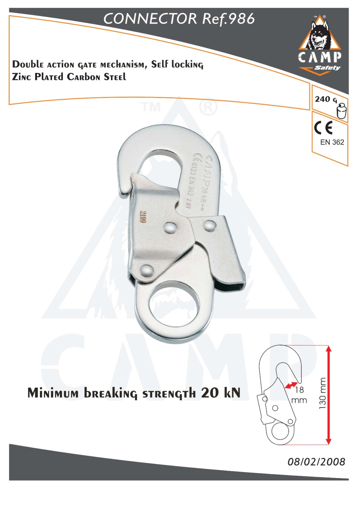 HOOK AND CARABINERS HOOK 18 MM.