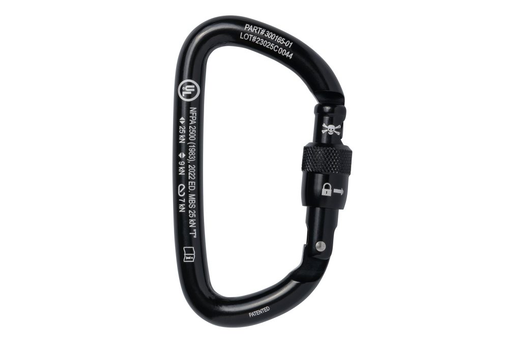 Ideal for rescue and rope access, this anodized carabiner’s patented key-lock design does not hang up when unclipping from your harness or web. An optimized D-shape maximizes its strength, and its wide gate opening fits over 1-inch (25-mm) diameter railings, unusual for a carabiner this compact and light. Safety indicators etched on the gate augment easy one-hand operation. Auto-Lock versions are available with a removable keeper pin for use with lanyards or for terminating escape or RIT lines. Every carabiner is proof loaded. Serial numbers on every carabiner.
