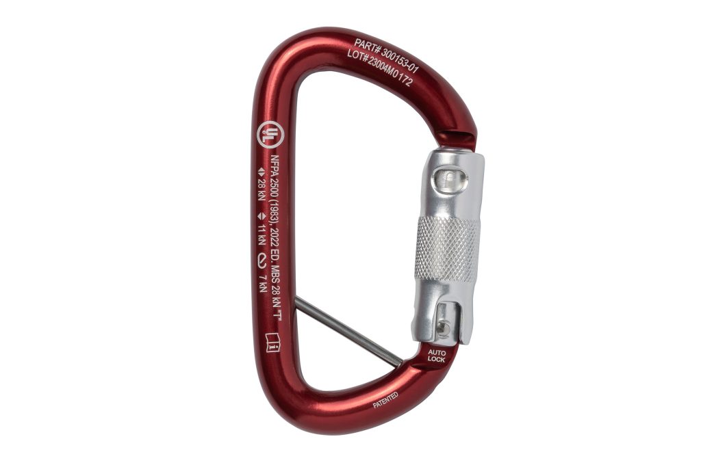 Ideal for rescue and rope access, this anodized carabiner’s patented key-lock design does not hang up when unclipping from your harness or web. An optimized D-shape maximizes its strength, and its wide gate opening fits over 1-inch (25-mm) diameter railings, unusual for a carabiner this compact and light. Safety indicators etched on the gate augment easy one-hand operation. Auto-Lock versions are available with a removable keeper pin for use with lanyards or for terminating escape or RIT lines. Every carabiner is proof loaded. Serial numbers on every carabiner.
