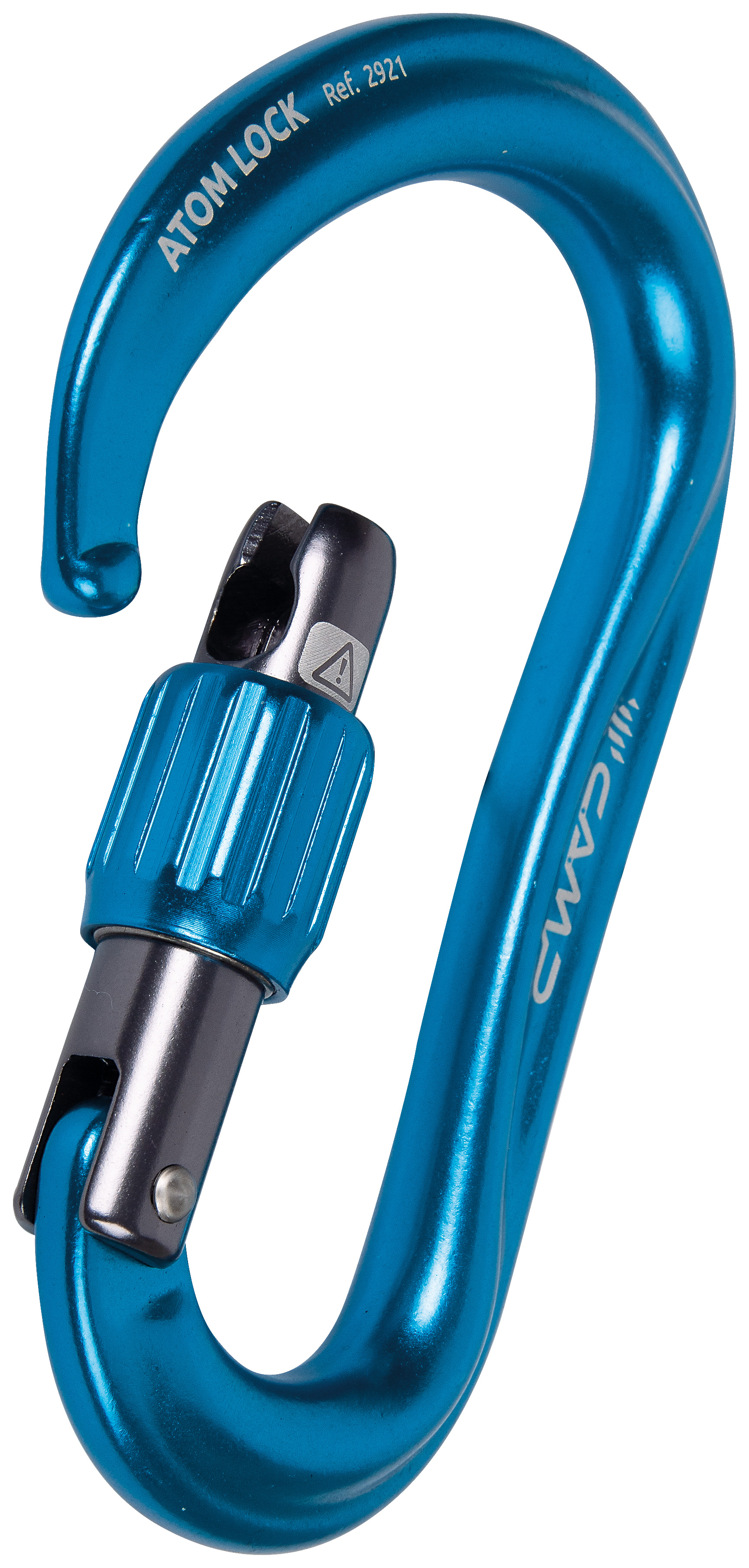 The Atom Lock is a high-strength HMS carabiner designed for belaying and rappelling. The SphereLock nose combines with a large gate opening to make clipping ropes and webbing easy.