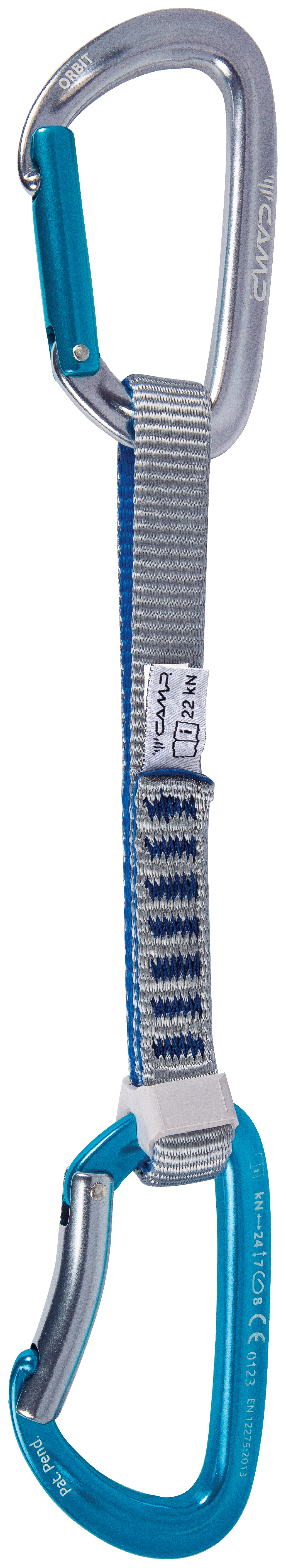 The Orbit carabiner is a solid workhorse for everyday climbing with great durability, smooth clipping action, lightweight engineering and the SphereLock closure which is an upgrade to the traditional keylock system with an even cleaner nose profile. 16 mm Nylon dogbones feature the Karstop Evo carabiner retainer on the rope end. Available in 12 and 18 cm lengths.