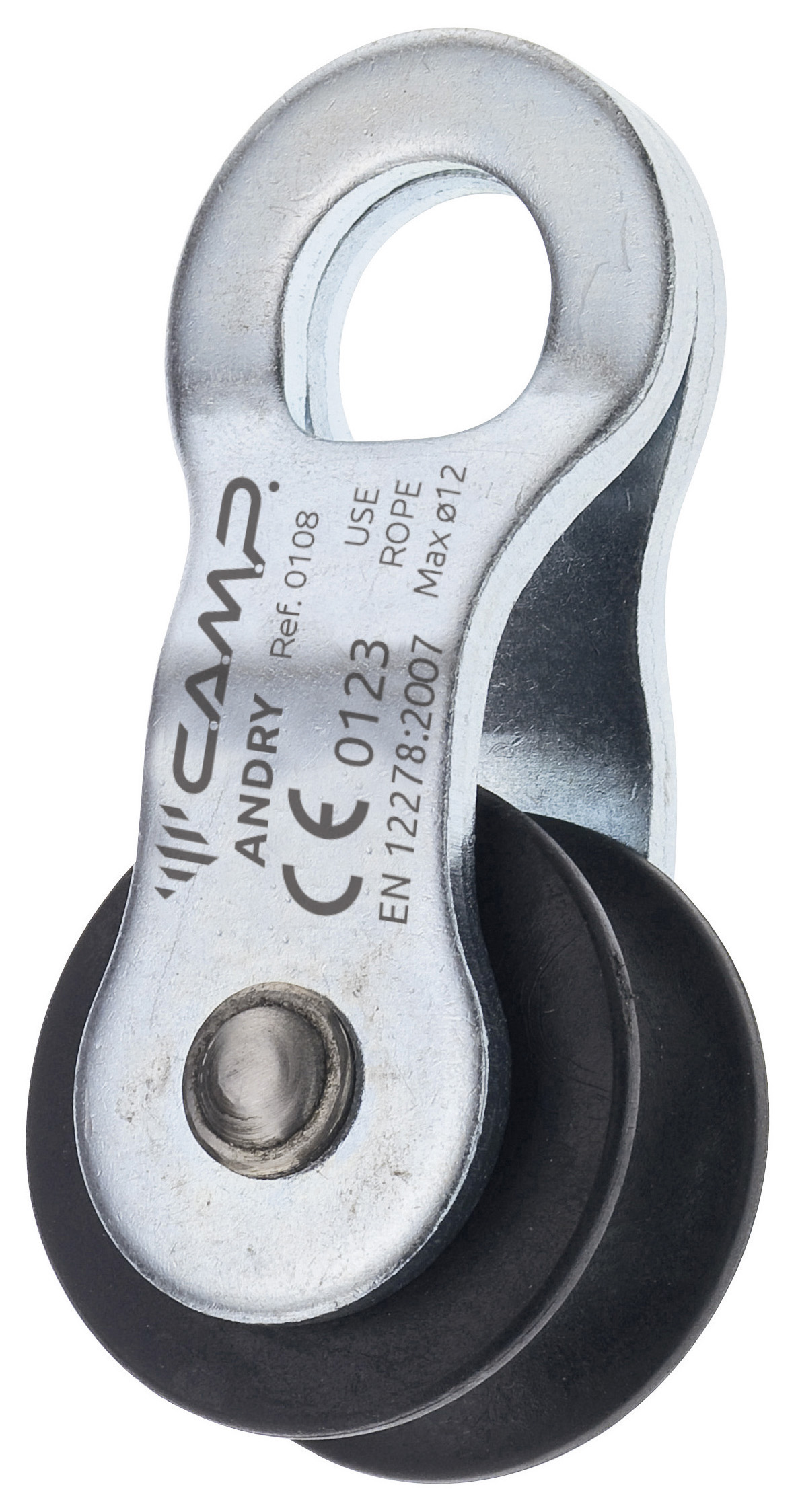 A light-duty steel pulley designed to be used for tensioning safety nets.