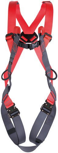 2 attachment points for fall arrest: 1 sternal double textile loop, 1 dorsal steel ring. Two gear loops.