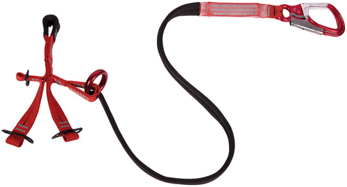 A flexible webbing multi-anchor point designed for winch operations during helicopter rescues. Allows for the creation of a three point anchor from a single attachment point. Equipped with a 110 cm back-up lanyard with a small energy absorber that can limit shocks generated during winch operations. A fixed aluminum alloy ring assists with rope maneuvers.