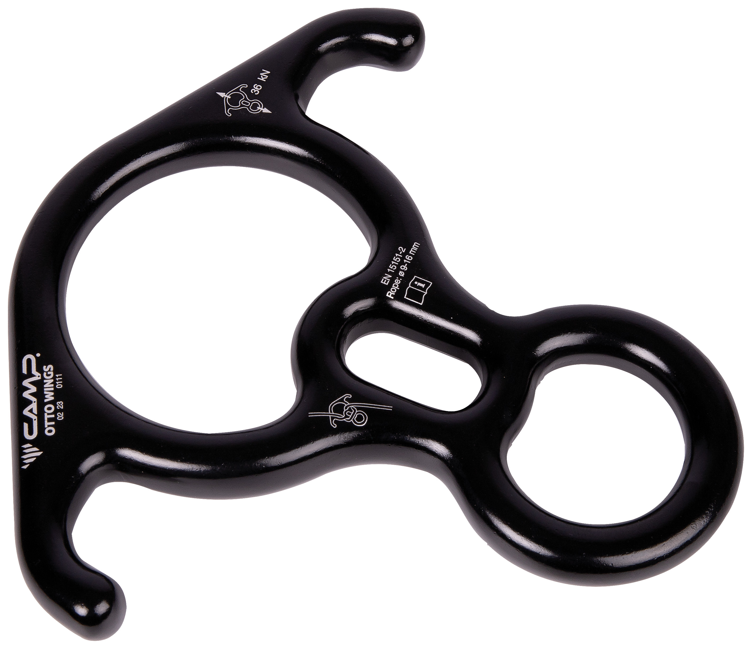 Large 'figure eight' descender with extensions for tying off.